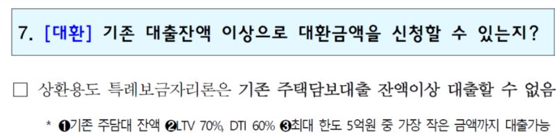 · 기존 대출잔액 이상으로 대환금액 신청은 불가