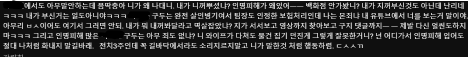 이후 엘리베이터를 타고 컴플레인을 건 매장으로 향해 직원에게 “야, 너희 나한테 전화하지 마. 서면으로 얘기해. 한 번만 더 전화해 봐. 내가 알바생 비위까지 맞추면서 돈 XX 해야 돼? 5000만 원도 내 맘대로 못써?”라며 이어서 폭언과 욕설을 하며 화를 낸다.