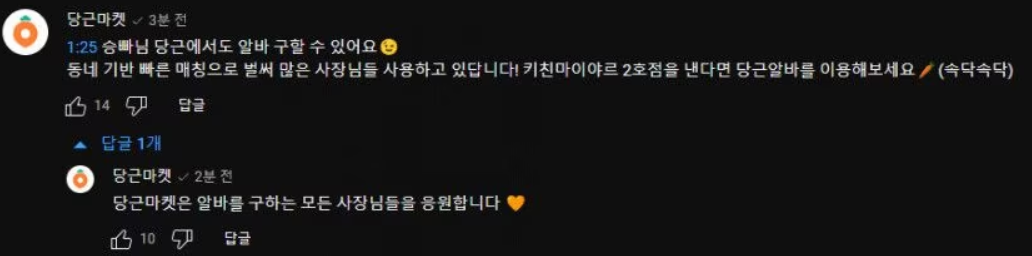 당근마켓은 해당 컨텐츠에 아래와 같은 댓글을 달았다. *현재는 삭제된 상황
