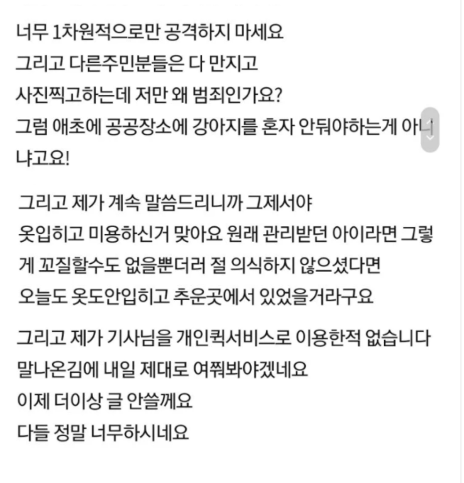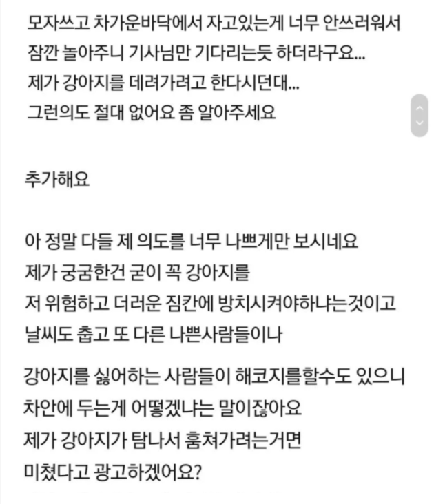 이후 사건의 전말이 점점 알게 되는 데, 그 여자분의 입장은 아래 댓글과 같았다.