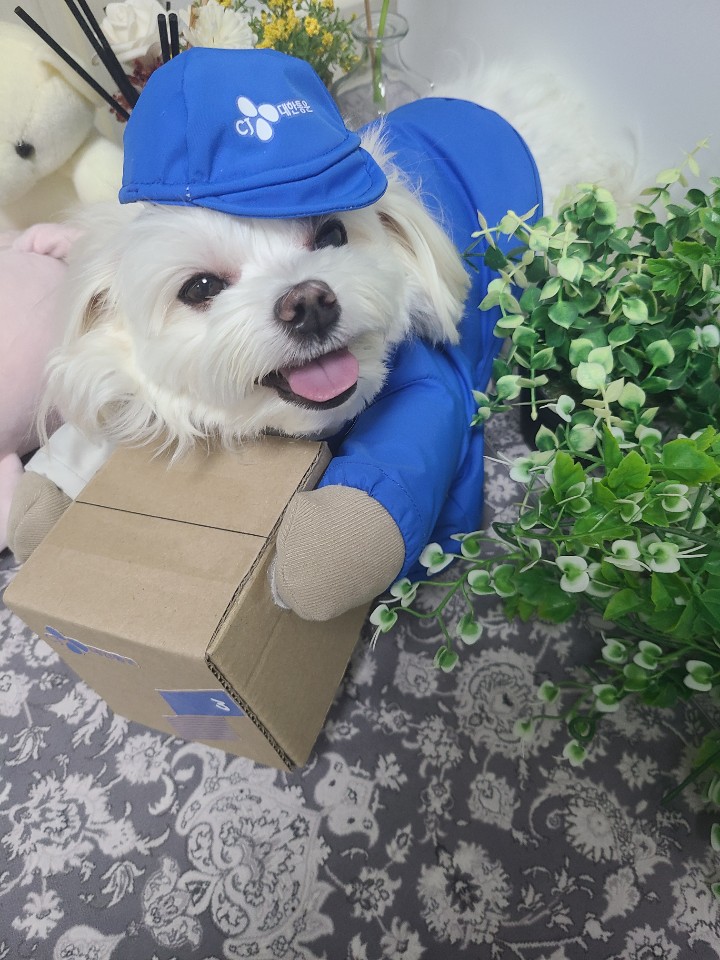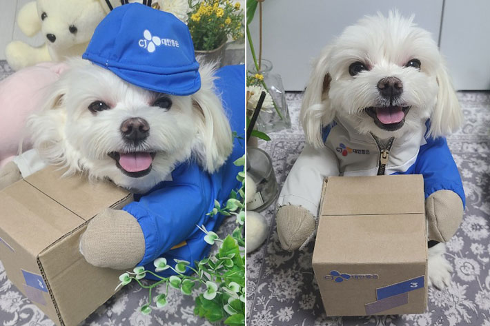 최근 다들 SNS나 기사를 통해 한번은 봤을 사진. 바로 택배기사 A씨의 반려견 '경태'가 CJ 본사로부터 옷과 선물을 받고 행복해하는 모습이다.