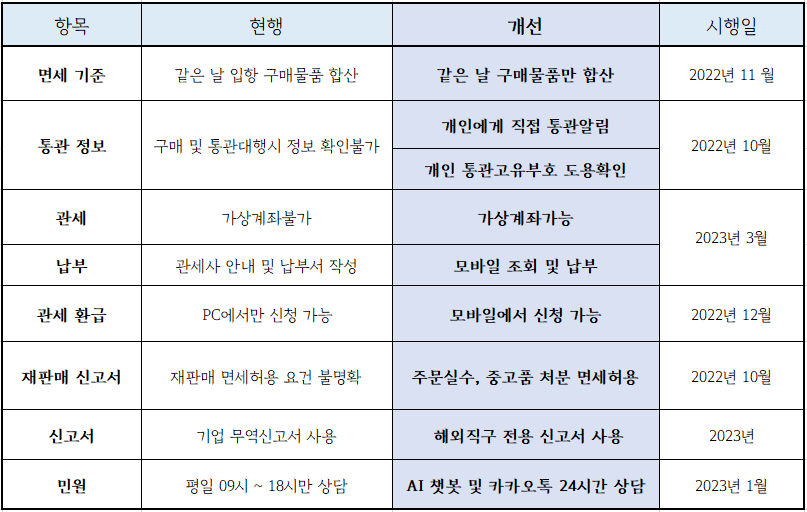 이에 대해 관세청은 국민편의 제고방안을 지난해 10월 마련했다.