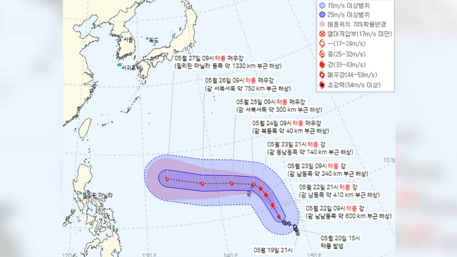태풍 마와르는 힌남노와 비슷한 '매우 강' 등급이 될 확률이 높은 것