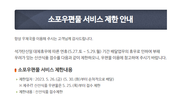 5월 27일(석가탄신일), 5월 29일(대체공휴일) 택배 운영 유무