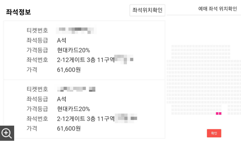 근데 이건 일부 시야제한이 아니라 그냥 아예 안 보인다. 이런 자리는 판매를 했으면 안 된다. 공연 당시 해당 문제로 서서 관람하려고 했으나 스텝의 제재로 앉아서 볼 수 밖에 없다고 전했다.