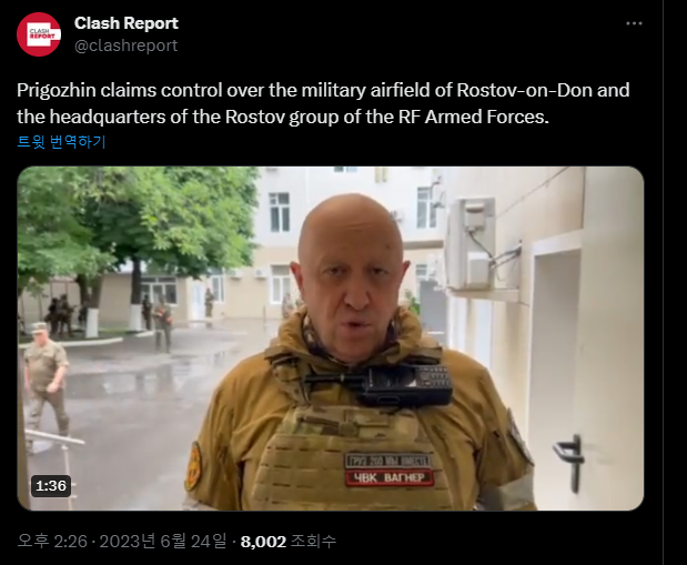 그러던 중 러시아 연방군과 공격 주축을 맡고 있는 바그너 그룹이 무장 쿠데타를 일으킨다.