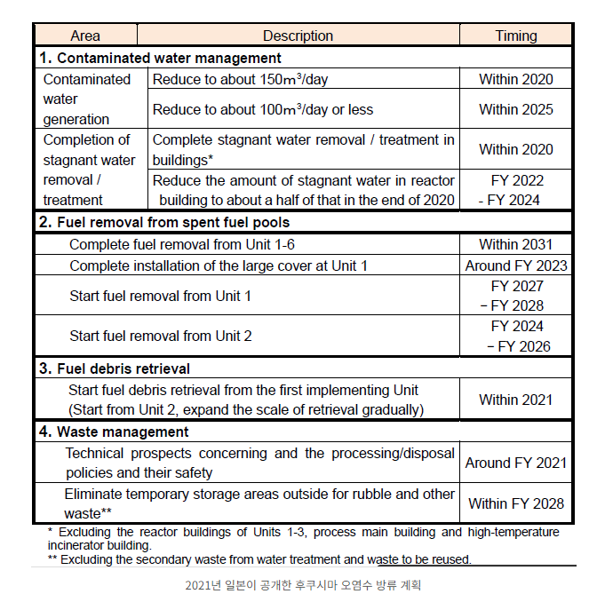 - 2021년 4월 일본 정부가 오염수 방류를 결정