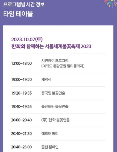 올해로 19번째 한화에서 주최하는 여의도 불꽃축제가 열린다. 올해 여의도 불꽃축제는 여의도 한강공원에서 오늘인 10월 7일에 행사가 시작된다.