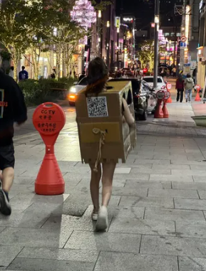 최근 강남 길거리에서 박스를 입은 여성이 등장했다. 박스에는 구멍이 있고, 지나가는 행인들에게 박스에 뚫린 구멍으로 손을 넣어보라고 하였다.