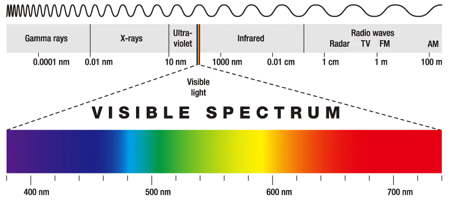 물체를 보는 사람에게 보여지는 색상은 물체마다 다른 파장의 결과이다. 우리가 무지개를 보며 색을 구별할 수 있는 것은 무지개는 파장이 짧은 보라색부터 파장이 긴 빨간색까지 이어지기 때문이다.