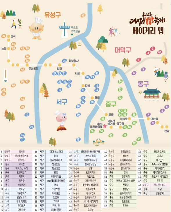 빵 좀 치는 업체들 69개. 사람들이 벌써부터 붐비는 게 상상된다.