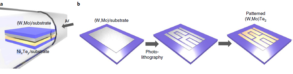 헌데 최근 이런 점을 보완할 수 있는 논문이 나왔었다. 논문 제목은 'Wafer-scale production of patterned transition metal ditelluride layers for two-dimensional metal–semiconductor contacts at the Schottky–Mott limit' 한국의 연구진들이 발표한 논문으로 Nature에 실렸었다.