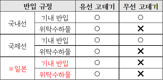 유무선 고데기 비행기 반입 규정 정리.