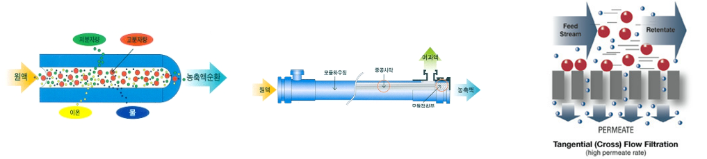 정밀여과(MF)와 한외여과(UF), 나노여과(NF)의 기본 원리는 동일하다.
