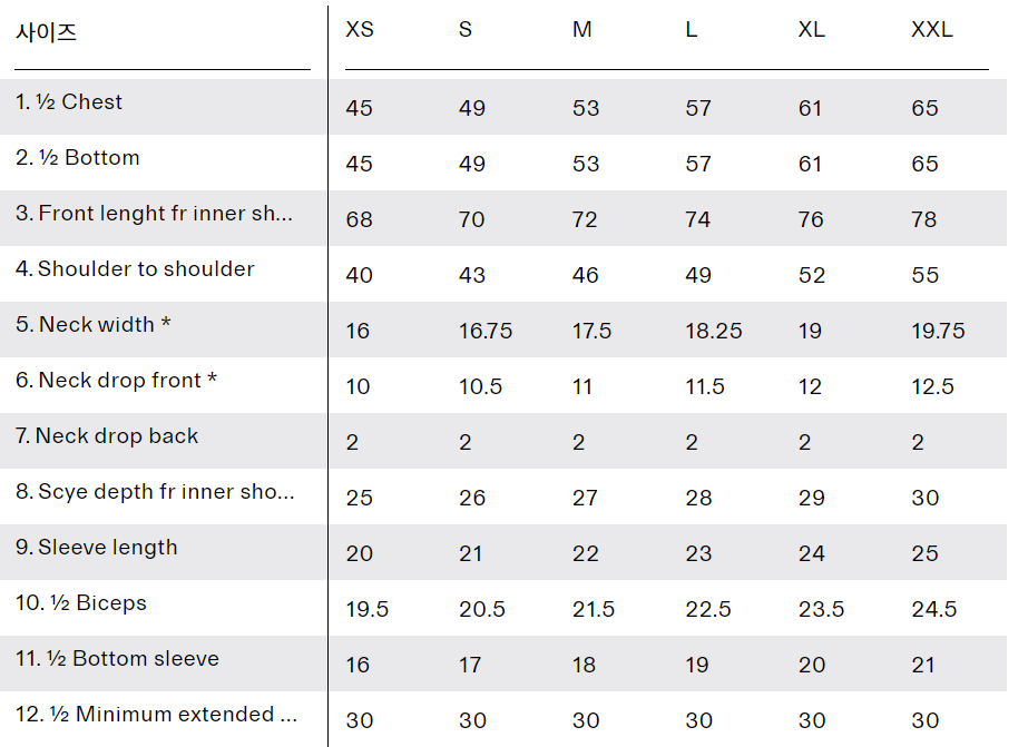 *처음에 입어봤을 땐 소재 차이 때문에 사이즈 차이가 느껴지는 줄 알았더니, 사이즈 표를 보니까 기장은 라이트웨이트와 동일하나 미드웨이트가 어깨와 가슴이 2cm씩 더 크다.