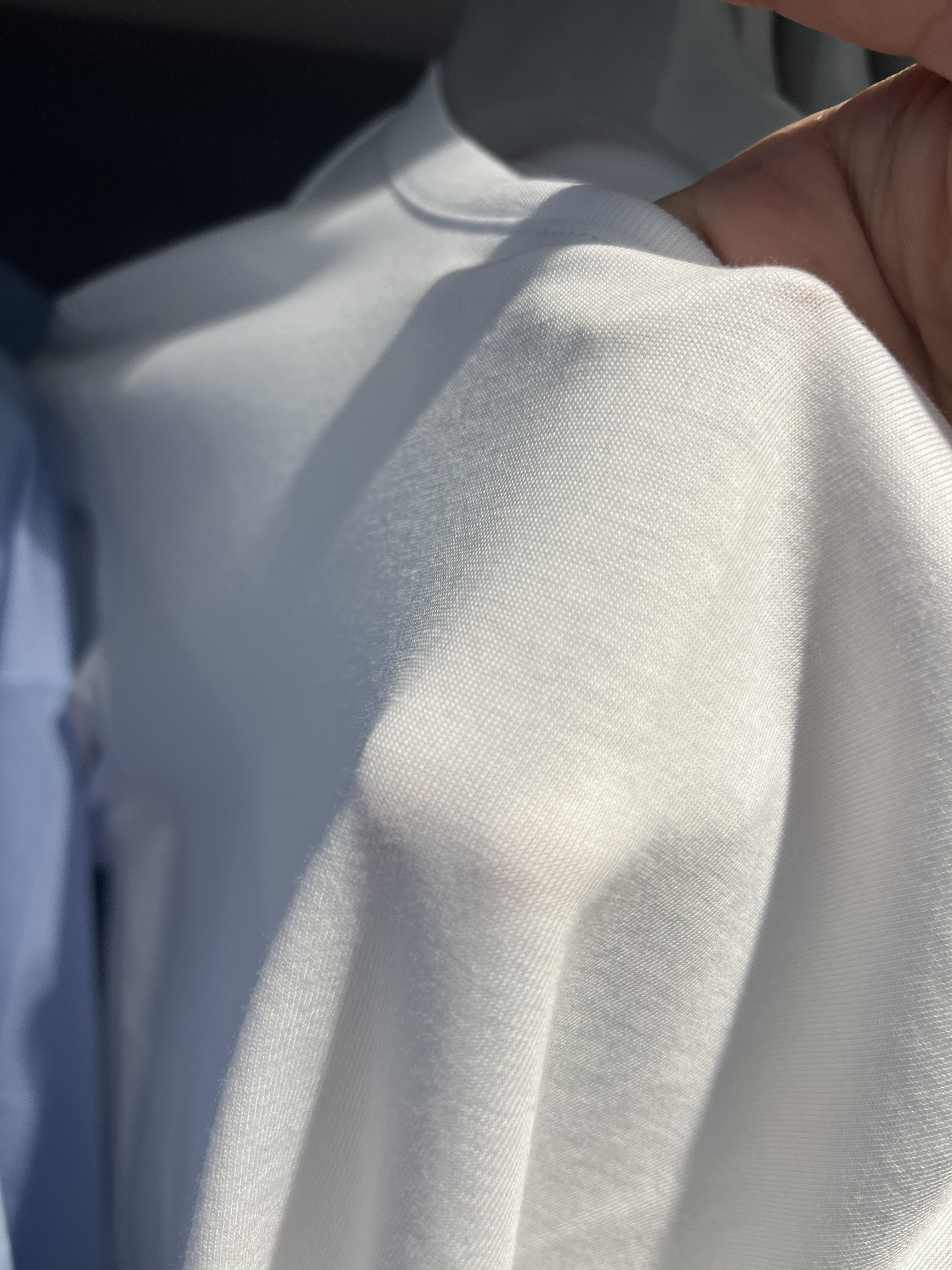 미드웨이트도 흰색 티는 비침이 아예 없는 건 아니라서 에어리즘과 같은 내의를 입거나 패치를 붙이는 것이 좋을 것 같다,