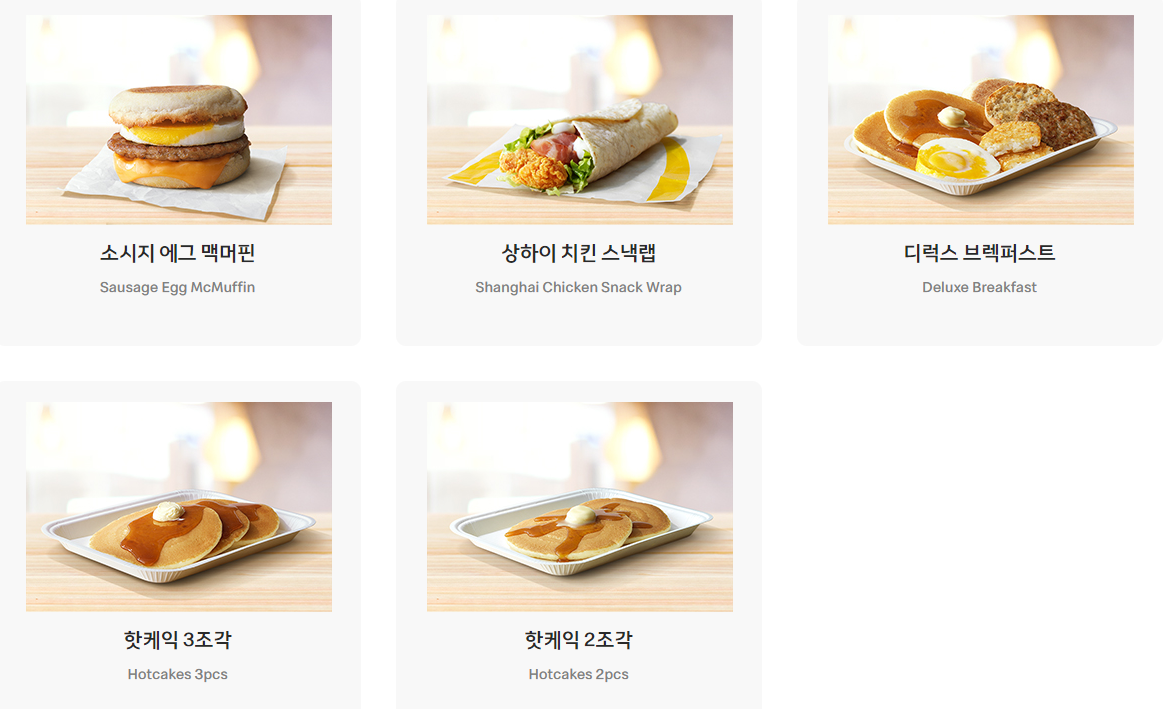 ※맥도날드 맥모닝 메뉴 *사이드 등