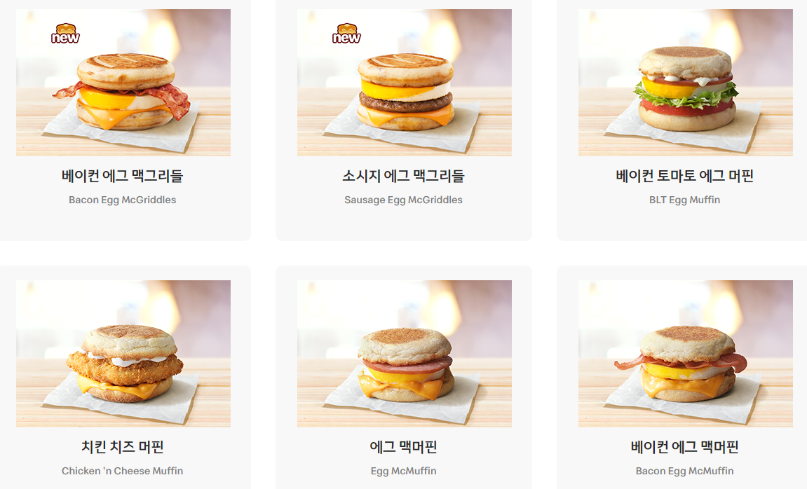 - 베이컨 에그 맥그리들(단품 4,300원, 콤보 4,900원, 세트 5,600원)