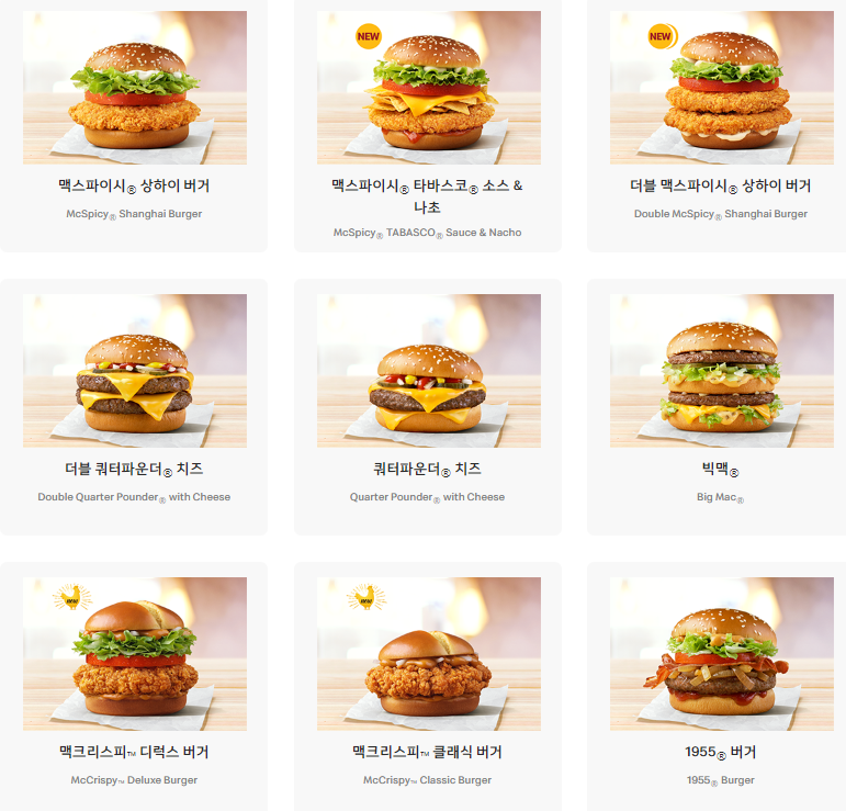 - 더블 맥스파이시 상하이 버거 단품 8,900원, 세트 10,300원