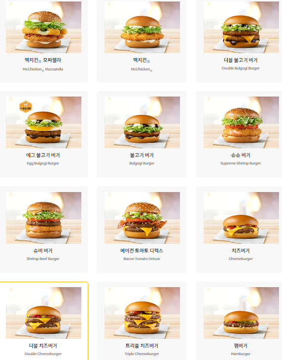 - 더블 치즈 버거 단품 4,800원, 세트 6,000원