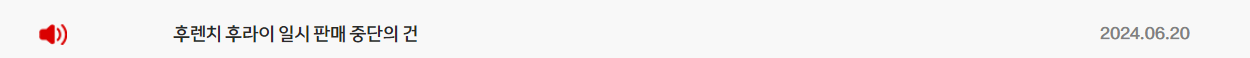바로 맥도날드에서 감자튀김(후렌치 후라이)을 일시적으로 제공할 수 없다는 공지사항을 낸 것. 현재 이는 맥도날드 홈페이지 공지사항에서 확인이 가능하다.