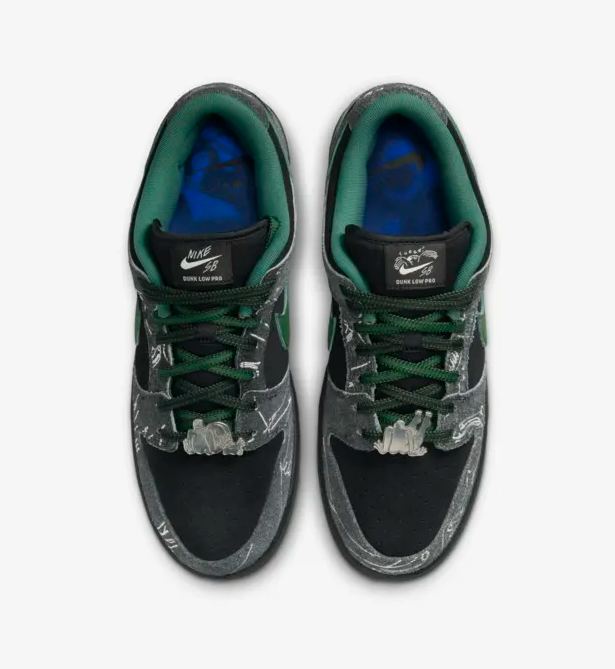 데어 스케이트보드 x 나이키 SB 덩크 로우 앤트러사이트 앤 고지 그린