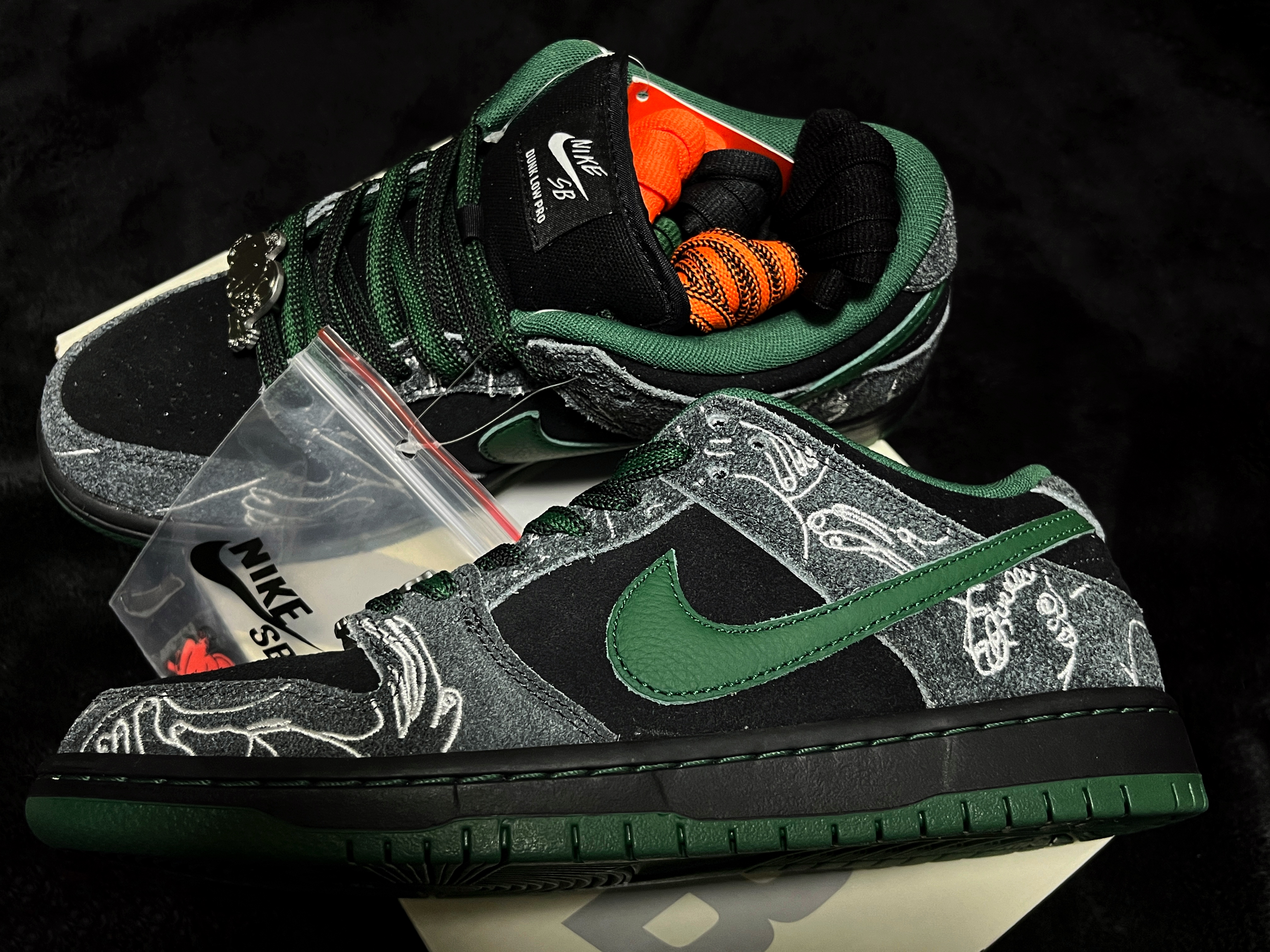 THERE SKATEBOARDS X NIKE SB DUNK LOW ANTHRACITE AND GORGE GREEN