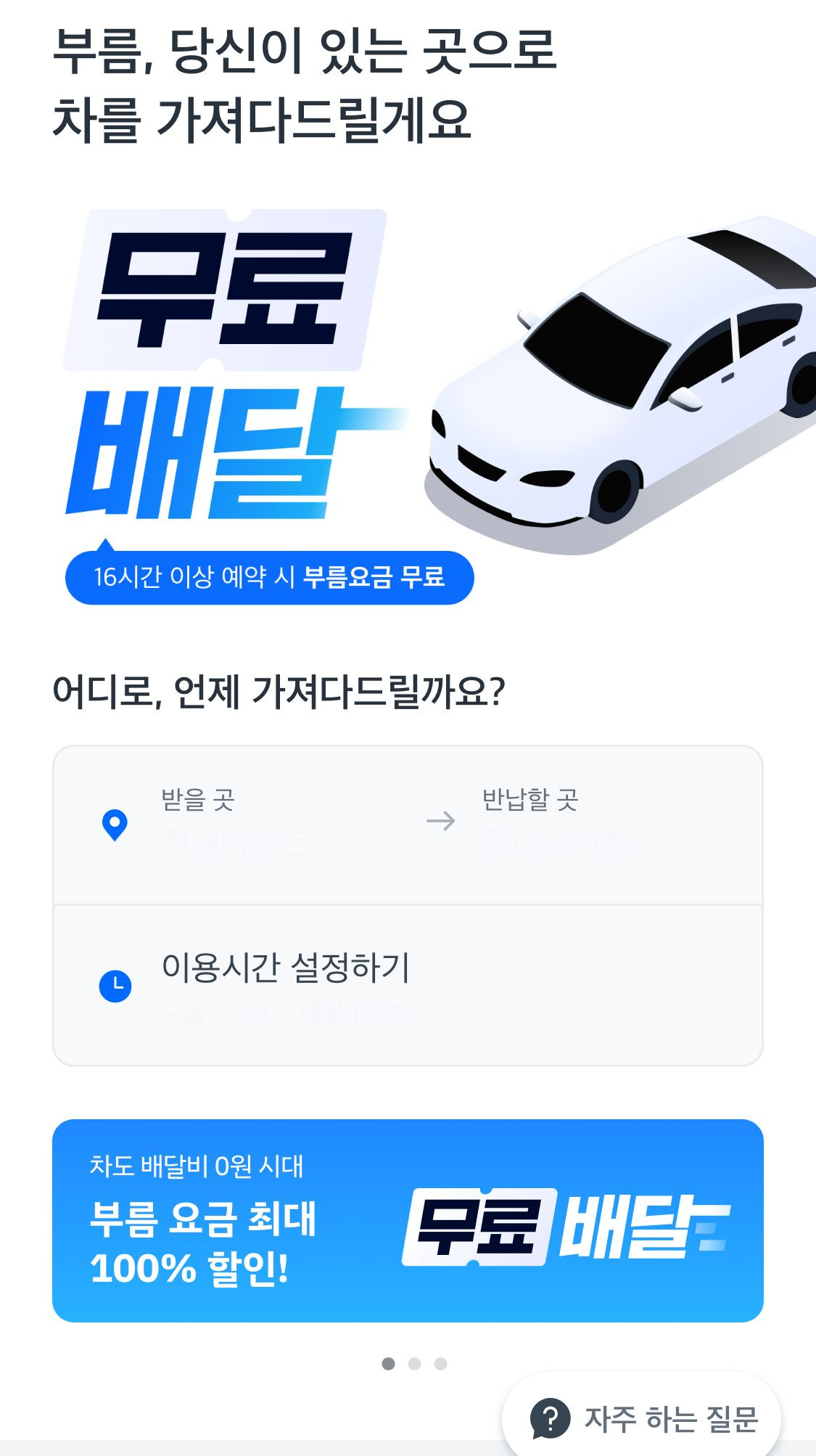 ✔️원하는 차량을 내가 있는 곳까지 배달해 주는 시스템이고, 배송 시간을 고려해 적어도 예약 시간 2시간 전에 예약을 해야 함 *배민 라이더처럼 차량을 이동해 주는 기사님을 배정하는 것