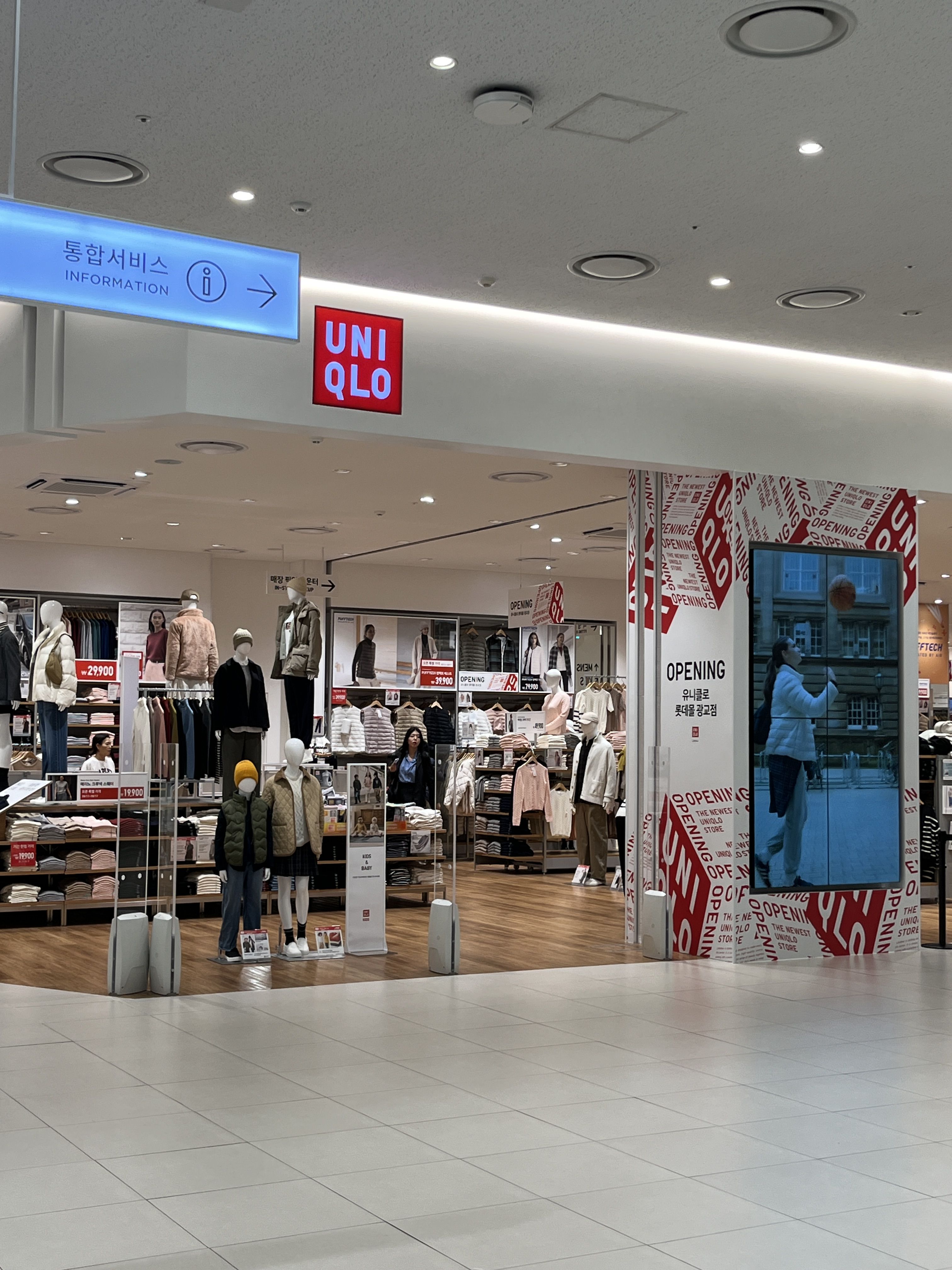 1층에 위치해 있고 홍보를 상당히 많이 했다. 유니클로로 인해 유입되는 사람들이 많을 거라 예상한 것 같다. 실제로 평일에 방문했는데 유니클로에만 사람들이 꽤 많았다. 매장 크기도 보기보다 정말 컸다.