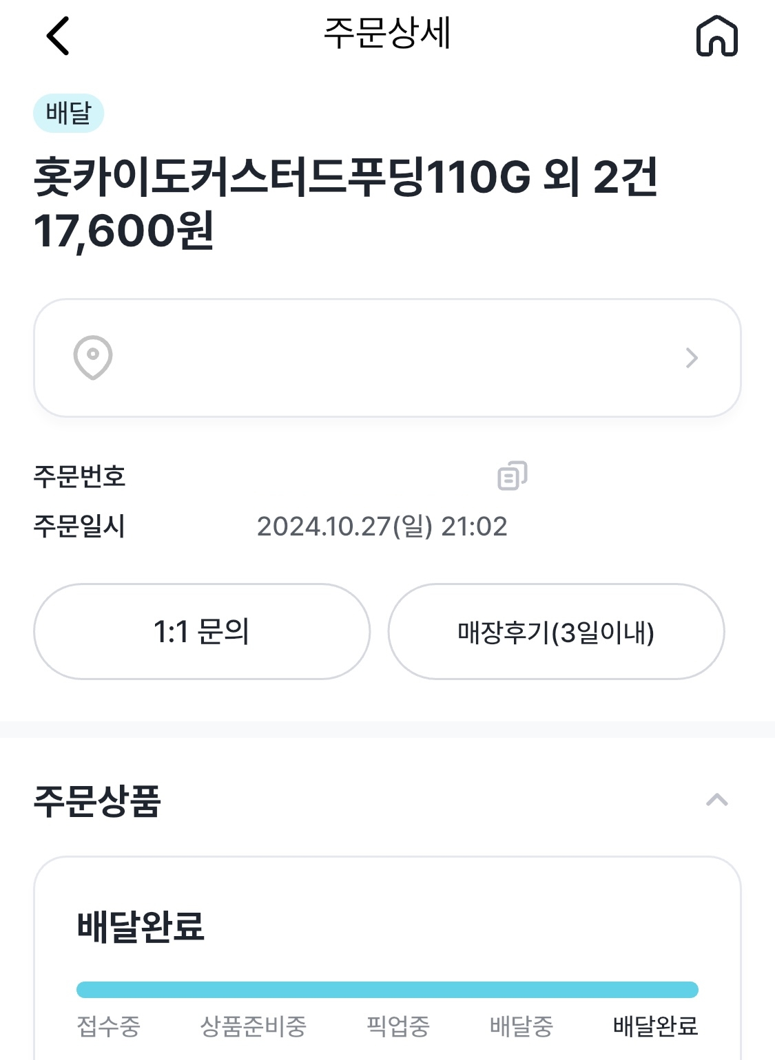 배달이 잘 들어가고 나면 다른 배달앱처럼 상품준비 중, 픽업 중 안내가 뜬다.