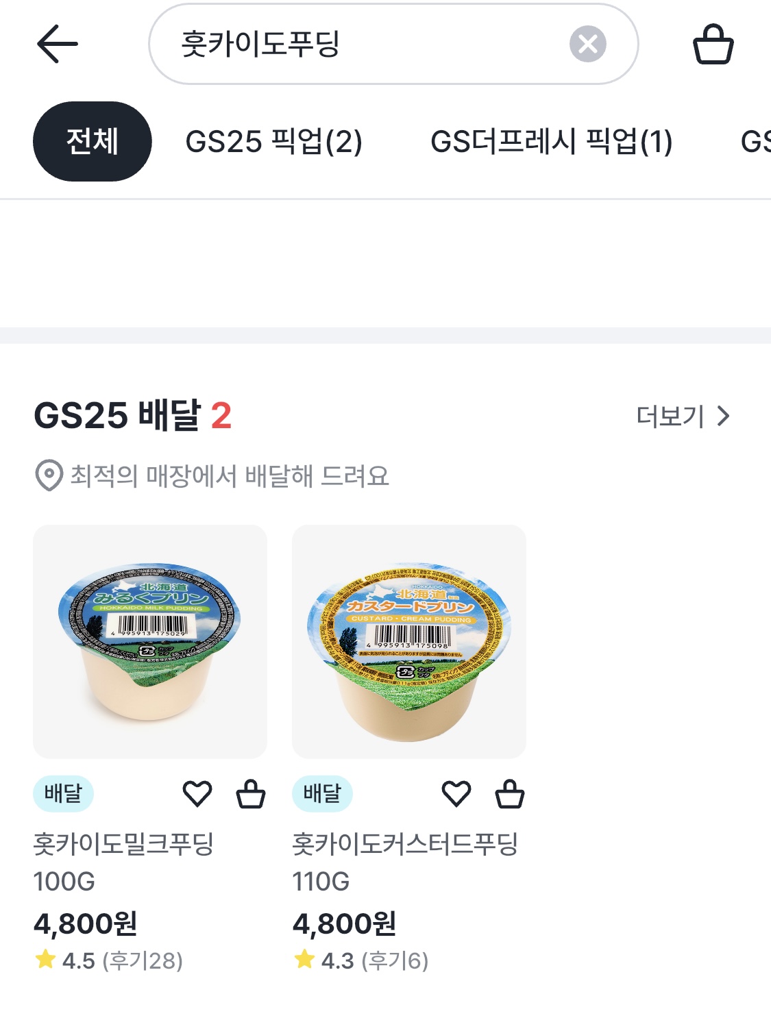 그리고 이후 GS25에서도 사케를 팔거나, 홋카이도 푸딩 등을 직수입해서 판매하기 시작했는데, 갑자기 생각나서 한번 찾아봤다. 오다가 편의점에서는 못 봐서 집에 와서 다시 GS25 어플을 깔고 검색을 해봤다.