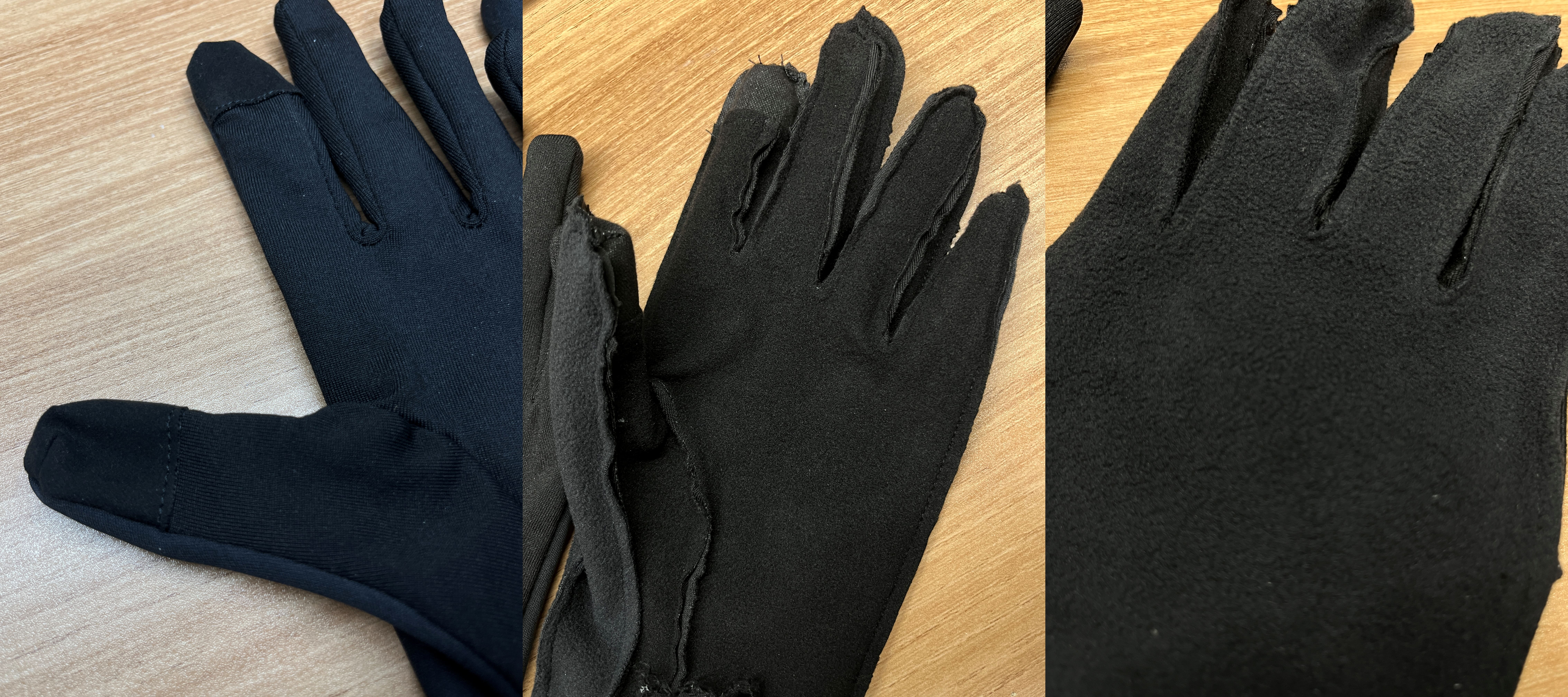 군더더기 없이 깔끔한 편. 소재는 부드럽고 손목 부분은 밴딩처리가 돼있는데 밴딩이 엄청 탄력이 좋은 편은 아니다. 그리고 엄지랑 검지 부분은 스마트폰 터치가 가능한 소재로 덧대있다.