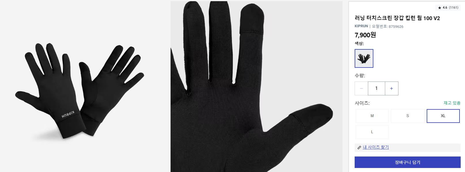 데카트론 러닝 터치스크린 장갑 킵런 웜 100 V2의 가격은 7,900원이다. 사이즈는 S~XL 사이즈까지 있으며, 현재 공홈에서는 XL 사이즈만 재고가 남은 상태인데 매장에 상품이 있을 수도 있고 금방 재입고가 되는 편