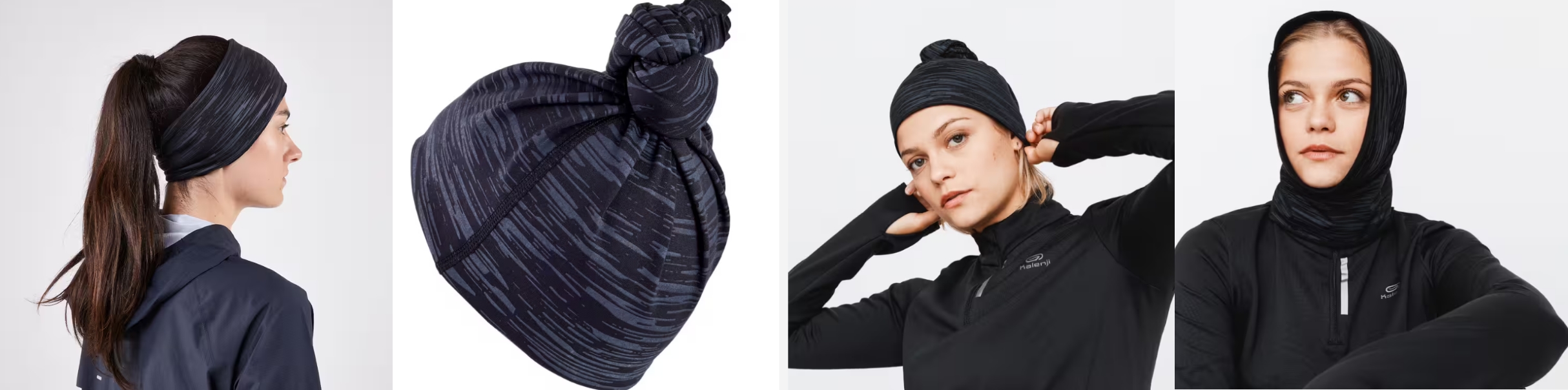제품명은 러닝 넥 워머지만, 택에는 헤어밴드라고 쓰여 있다. 그도 그럴 것이 길이가 생각보다 길어서 데카트론 공홈에 있는 것처럼 목도리처럼 써도 되고, 마스크처럼 활용도 가능하다.